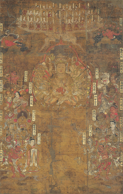 しかし日本ではこれらの図像イメージが定着するより先に、仏教における観音菩薩の眷属として解釈されていたようで、同じく中国伝来の仏教美術である「千手観音二十八部衆像」の二十八部衆の一体として定着します。ただし風神と雷神の個性は他の二十八部衆よりも際立つこと、とくに自然現象を象徴するという親しみやすさから、次第に2神の存在だけがクローズアップされていくこととなりました。また風神と雷神は民間信仰の対象として庶民の覚えもよく、とくに菅原道真=雷神を崇める天神信仰は大きな人気を博し、仏教というカテゴリを超えた神様として日本文化に浸透していったのです。