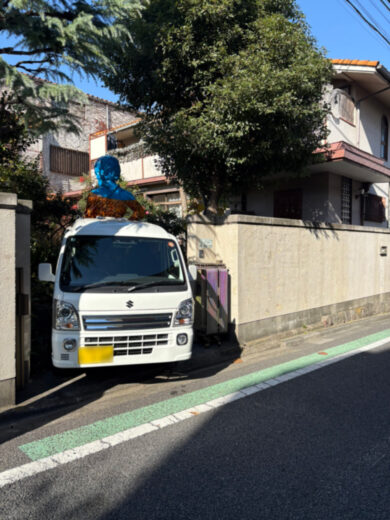 玄関先でひときわ目を引くのは、白い軽トラックの荷台に固定された高さ約2メートルの小便小僧の彫刻作品である。鮮やかな色彩をまとったこの作品は、コロナ禍でイベントが中止となった時期に「街にアートを届ける」ため、移動美術館として全国を巡った経緯を持つ。今ではアトリエの象徴として来訪者を迎えている。