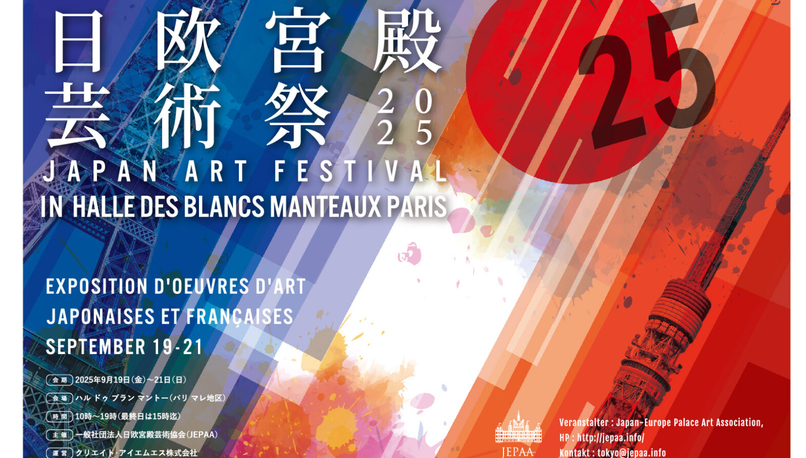 日欧芸術文化交流の祭典『Japan Art Festival・日欧宮殿芸術祭2025』が、一般社団法人日欧宮殿芸術協会(JEPAA)の主催により、3年ぶりにフランス・パリで開催されました。芸術の都として知られるパリは、いまなお新しい文化が生まれる国際芸術都市であり、その地で再び本展が開催されること自体が大きな意義を持ちました。